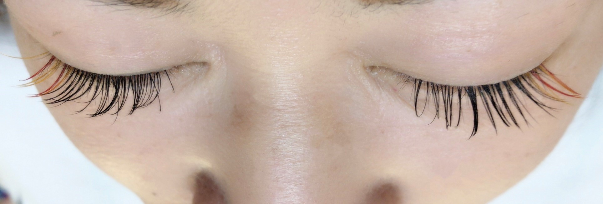 カラーエクステ イエローとレッドを目尻に***